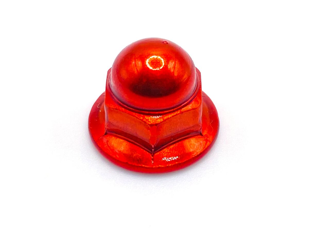 既設の固定ボルト(M8)を“通り道の良いアースポイント”として働かせるための、NINJABOLTの魔法のキャップナット〈赤〉です。